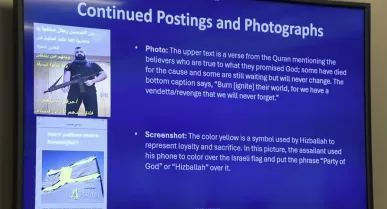 “Sii come Gaza”. Ma alla conferenza spunta un’immagine simile a un combattente di Hamas